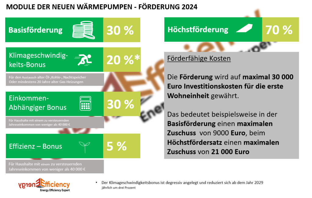 Diese Förderung gibt es für alle Verbraucher. Sie gilt für diejenigen, die einen fachgerechten Heizungstausch durchführen lassen. Es muss auf eine neue, förderfähige Wärmepumpe im Rahmen der BEG-Förderrichtlinie umgestellt werden.